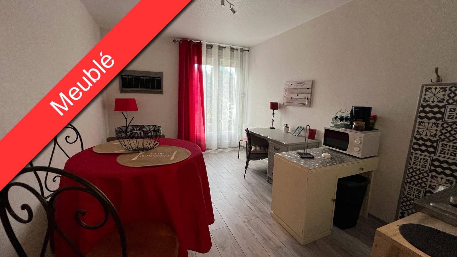 Studio entièrement meublé situé au rez-de-chaussée comprenant une pièce de vie avec un coin kitchenette et une salle d'eau avec wc.