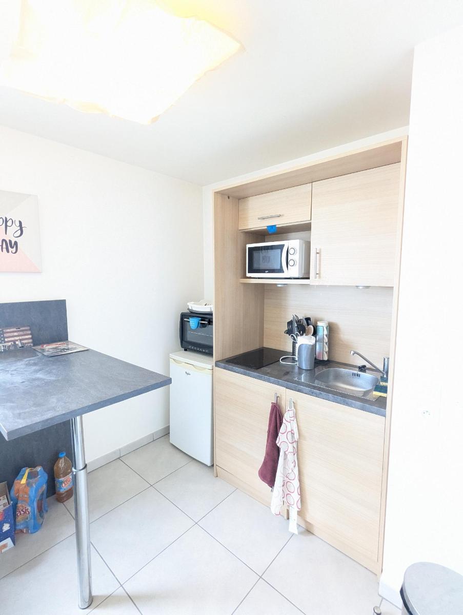 Quartier du Stade Philippe Marcombes, à proximité des lignes de bus et commerces, au sein d'une petite copropriété, un appartement de 37m² prolongé d'une terrasse et se composant d'une entrée, séjour, cuisine aménagée, ...