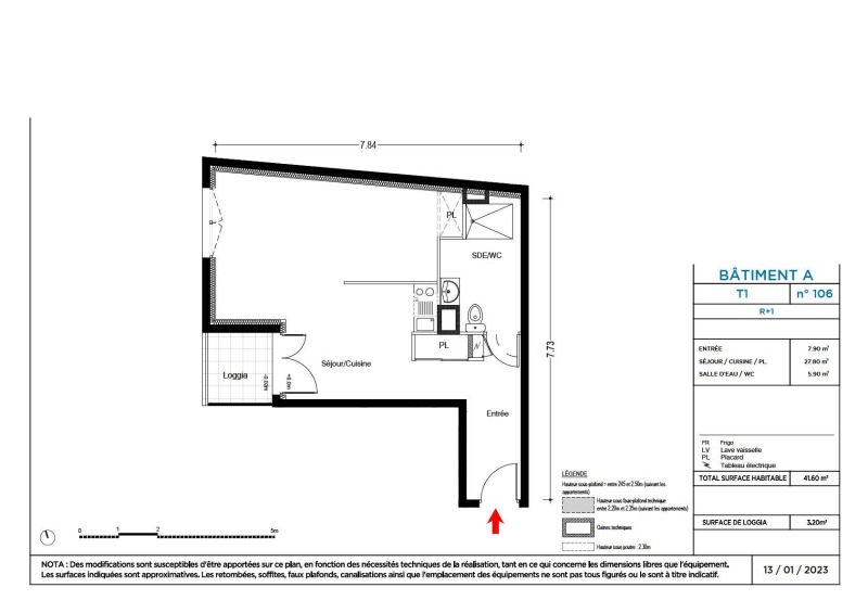Cet appartement s'organise comme suit : un séjour, une chambre, une cuisine ouverte équipée, une salle d'eau et wc.