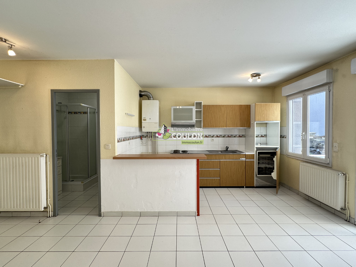 RAVISSANT Mini T2 doté d'une décoration très sympa : coin cuisinette équipée ouvert sur un agréable séjour, chambre séparée, salle de bains bénéficiant de nombreux rangements, parking, 450?HC.