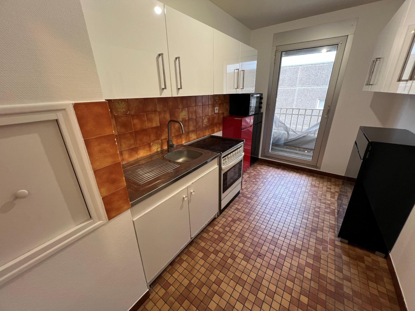 Très vaste T2 lumineux situé dans un immeuble proche Banque de France et INSPE et à 10 mn à pied de Jaude. Vous pourrez apprécier cette cuisine équipée et ce séjour en carrelage donnant sur une terrasse, une spacieuse chambre en parquet avec penderie et balcon...