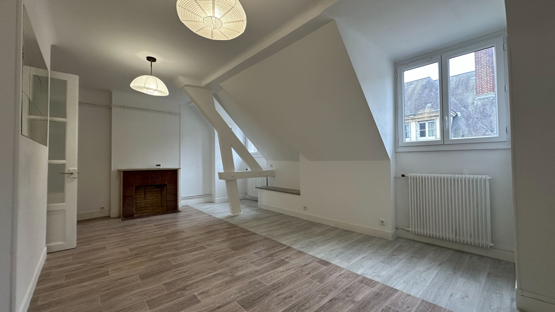 En centre ville de COMPIEGNE, à proximité de l'UTC, au 3ème et dernier étage d'un petit immeuble, un studio original (21 m2 loi carrez) mais 32 m2 au sol comprenant: entrée avec placard, séjour avec mezzanine pouvant accueilir un matelas de 140 cm et...