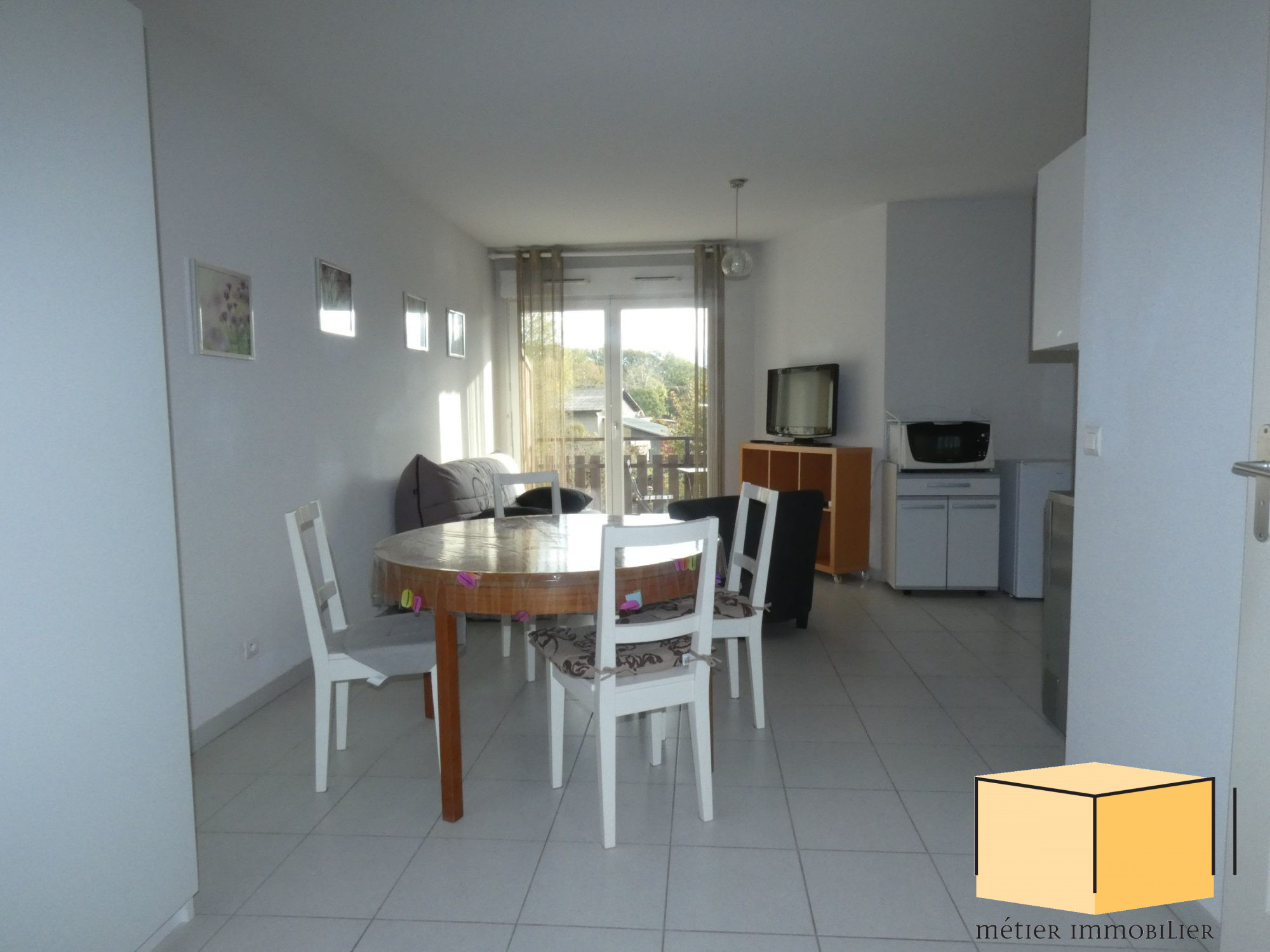 Sur la commune de CORBONOD (01420), un appartement de type 3 meublé, au rez-de-chaussée surélevé, d'une surface de 50,55 m² comprenant : une entrée, une cuisine équipée ouverte sur séjour, une salle de bain, un toilettes séparés, un balcon, une chambre a...
