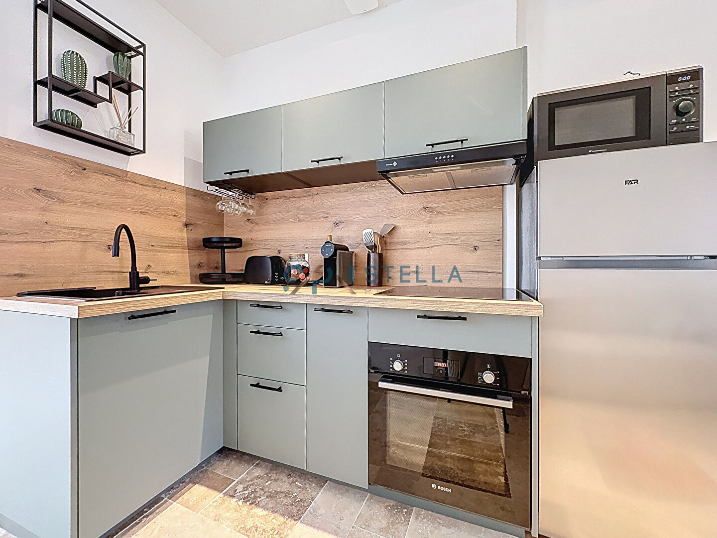 Dès l'entrée, vous trouverez une cuisine aménagée et équipée, ...