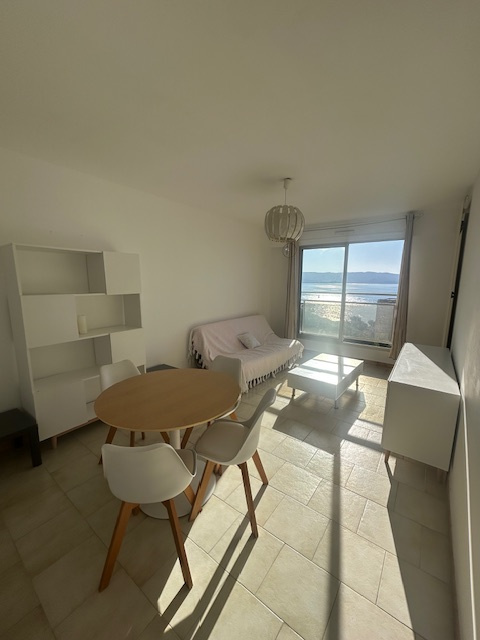 Ajaccio Immobilier vous propose à la location annuelle ce joli studio meublé et équipé, situé dans une résidence à deux pas de la plage de Marinella.