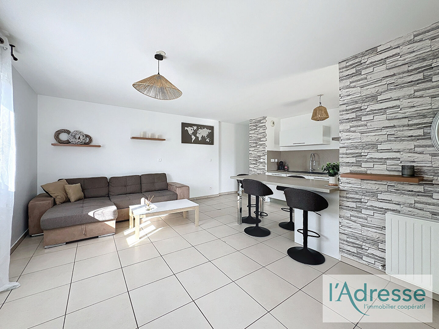 Offrant une surface de 82 m² environ, il se compose comme suit : une entrée, une cuisine équipée avec cellier, un séjour, trois chambre...