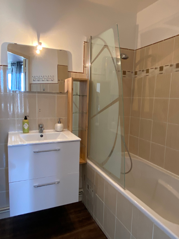 Studio entièrement rénové, loué meublé et situé au 1er étage d'une résidence calme à deux pas de la Gare et du Centre. Il comprend une pièce à vivre avec canapé lit, une cuisine aménagée et équipée (hotte, four, plaque, lave linge, réfrigérateur et micro ...