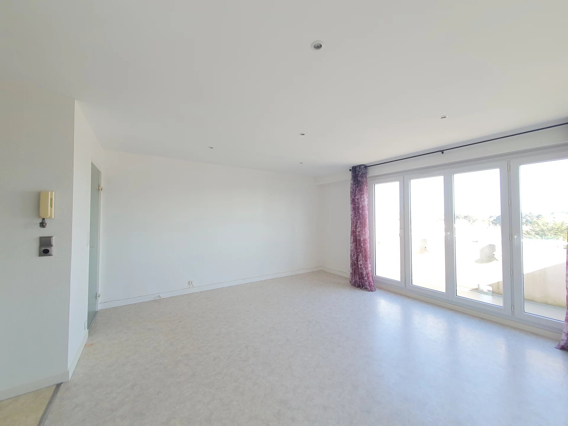 ST BRIEUC, proche centre ville, au dernier étage d'une résidence sécurisée avec ascenseur, appartement 2 P. en bon état comprenant : entrée avec placard, séjour ouvrant sur terrasse - cuisine équipée, 1 chambre, salle d'eau - WC - cave