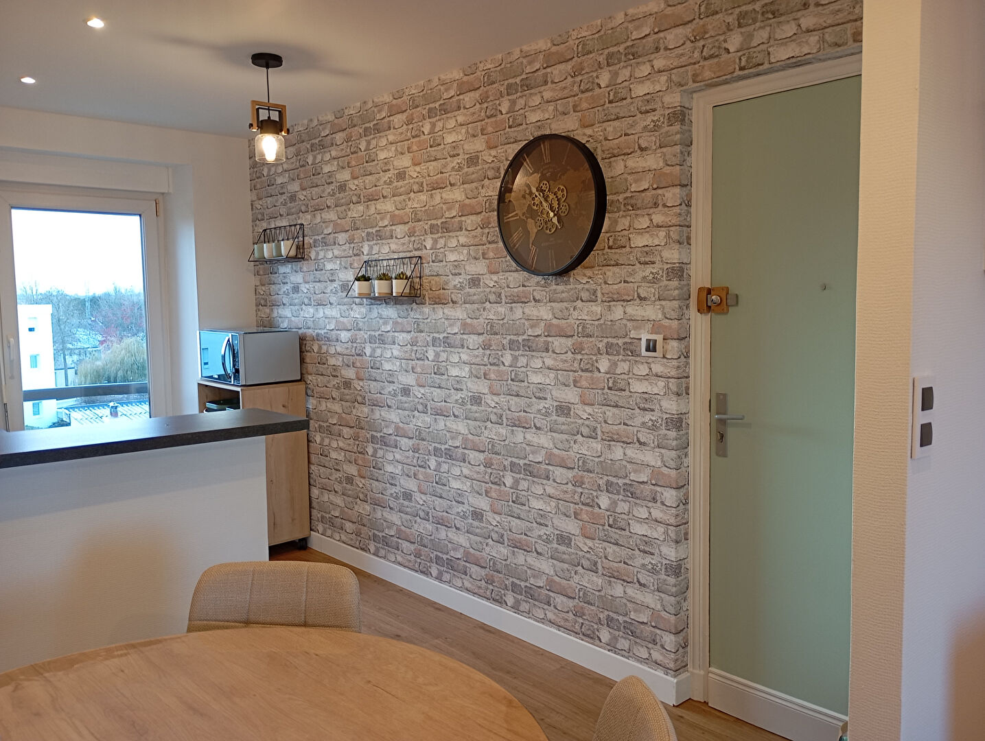 A LOUER SAINT-BRIEUC /GARE - Appartement T2 MEUBLÉ comprenant une cuisine équipée aménagée (four, plaques, hottes, frigo, machine à laver) , un salon séjour, une chambre et une salle d'eau avec WC. LUMINEUX!