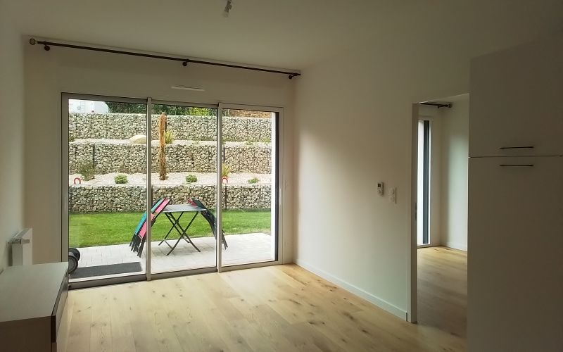 A LOUER SAINT BRIEUC CENTRE VILLE , dans une résidence neuve de STANDING, appartement de type II de 43m² avec terrasse et jardin, comprenant: une entrée avec placard, pièce de vie avec cuisine aménagée et équipée, le tout ouvrant sur une terrasse et jardinet c...