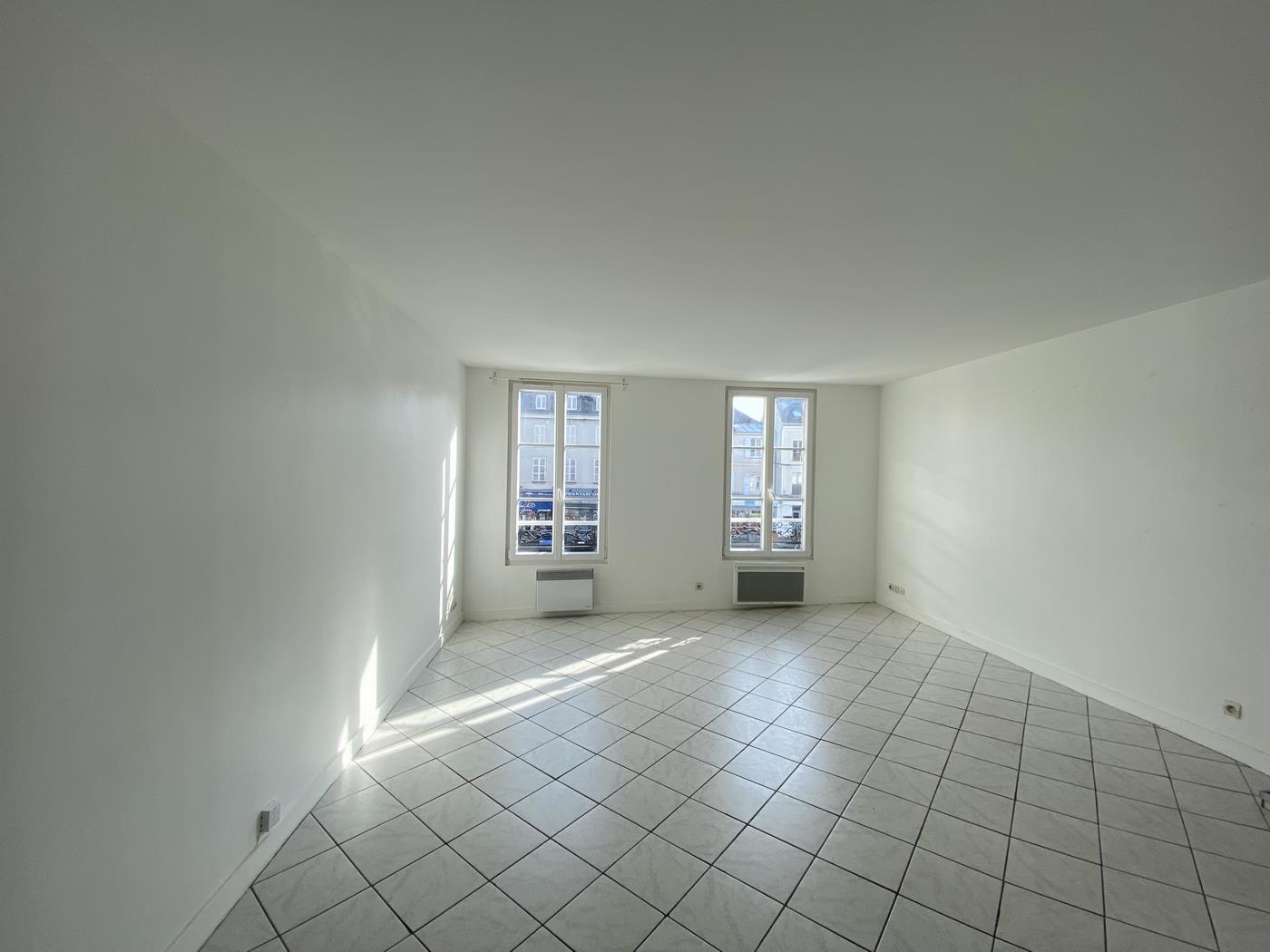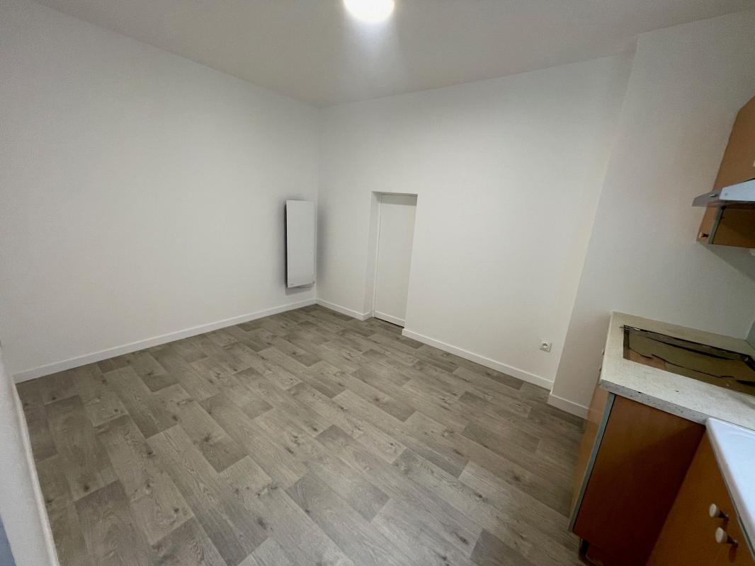 En plein centre ville, situé au 1er étage, appartement F2 entièrement rénové, comprenant une entrée, un séjour avec coin cuisine (plaque de cuisson 2 feux, hotte), une chambre, une salle d'eau avec wc - Chauffage par convecteurs électriques.