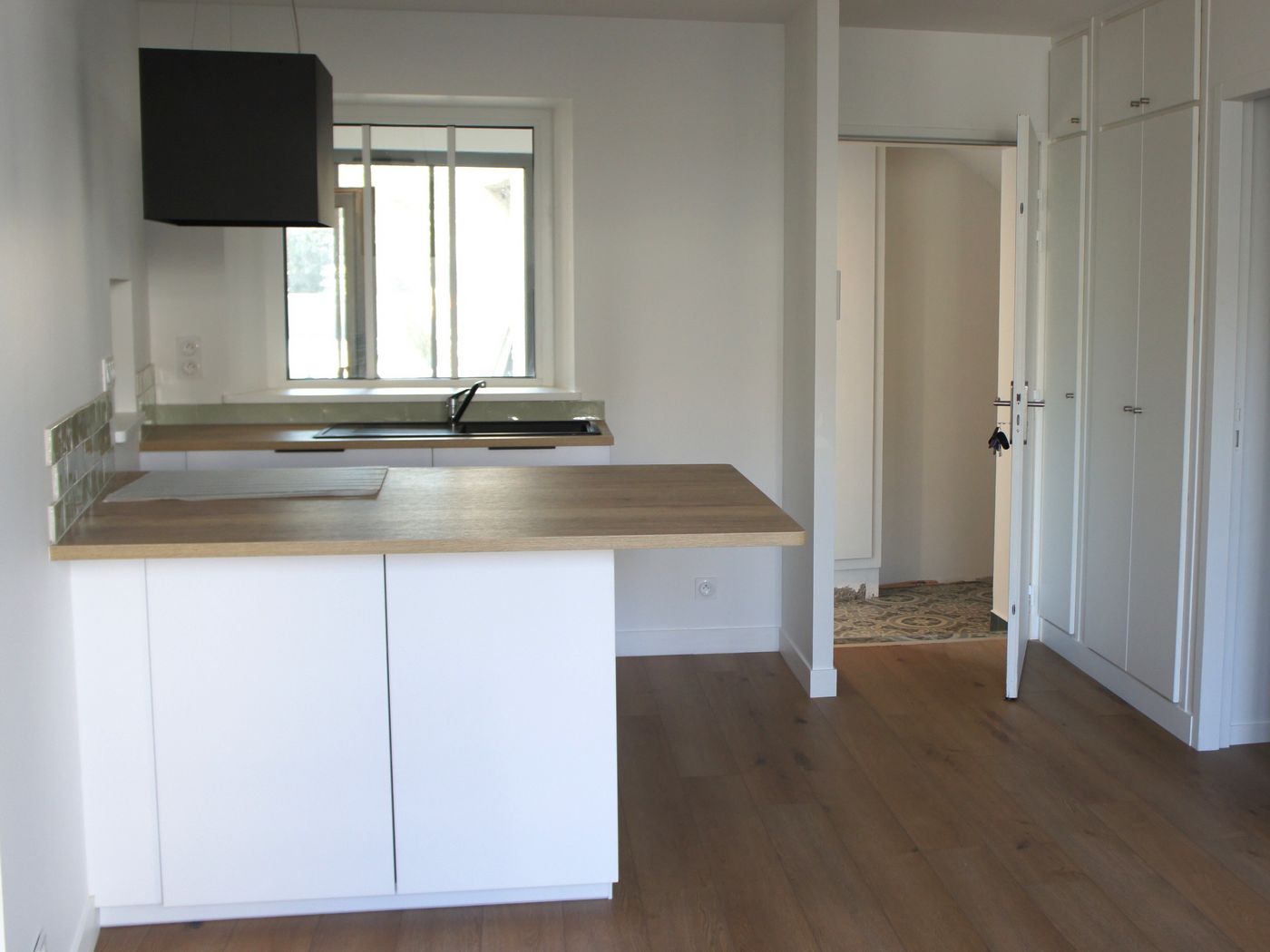 Une entrée, une grande cuisine aménagée (ou vous pouvez aménager un séjour), une salle de bain...