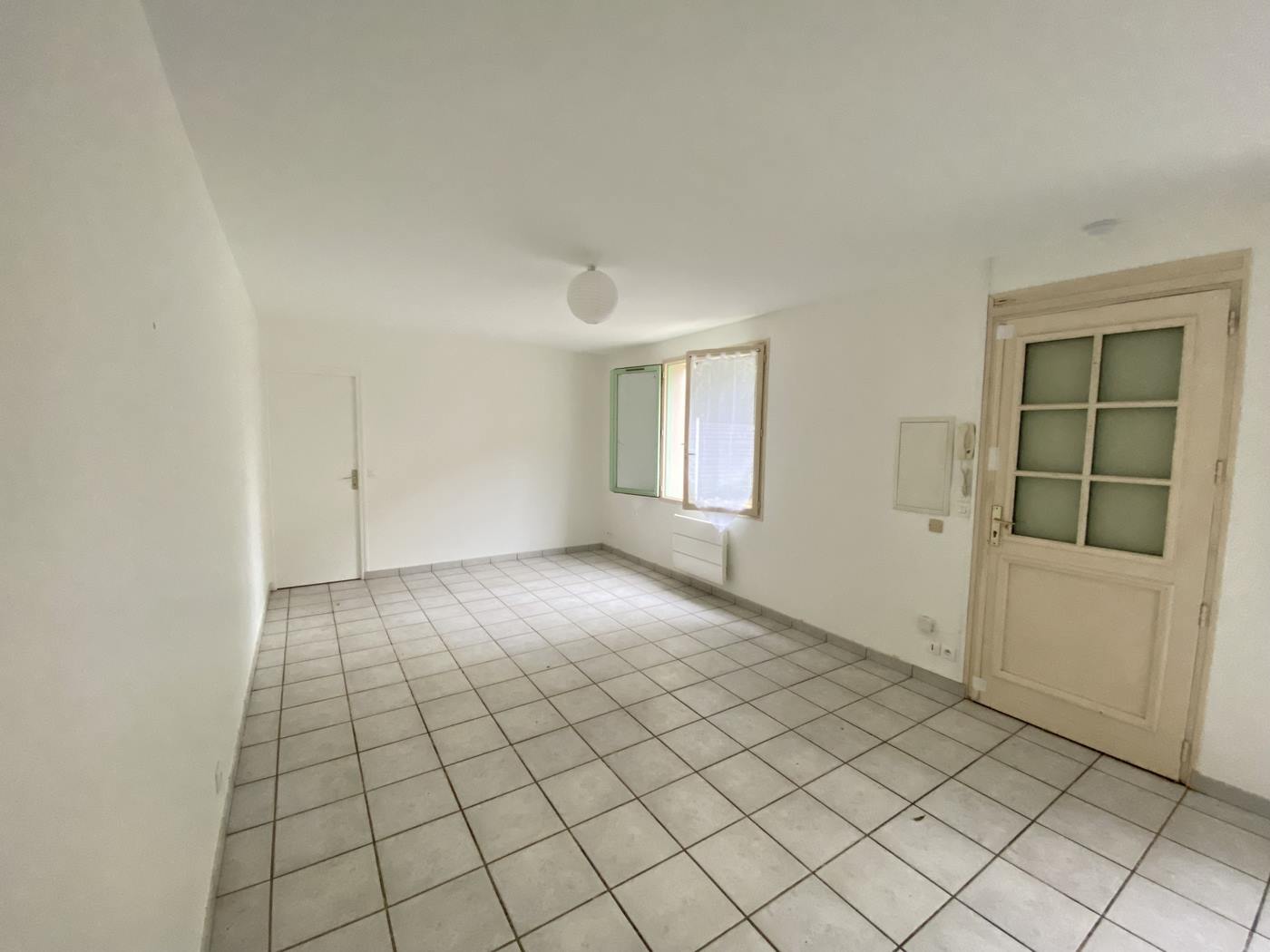 Proche de la gare, au RDC d'un petit immeuble, appartement F2 comprenant un séjour avec coin cuisine AMENAGEE et EQUIPEE (plaque vitro,four), une chambre, une salle de bain, un wc. - Un emplacement de PARKING - Chauffage par convecteurs électriques