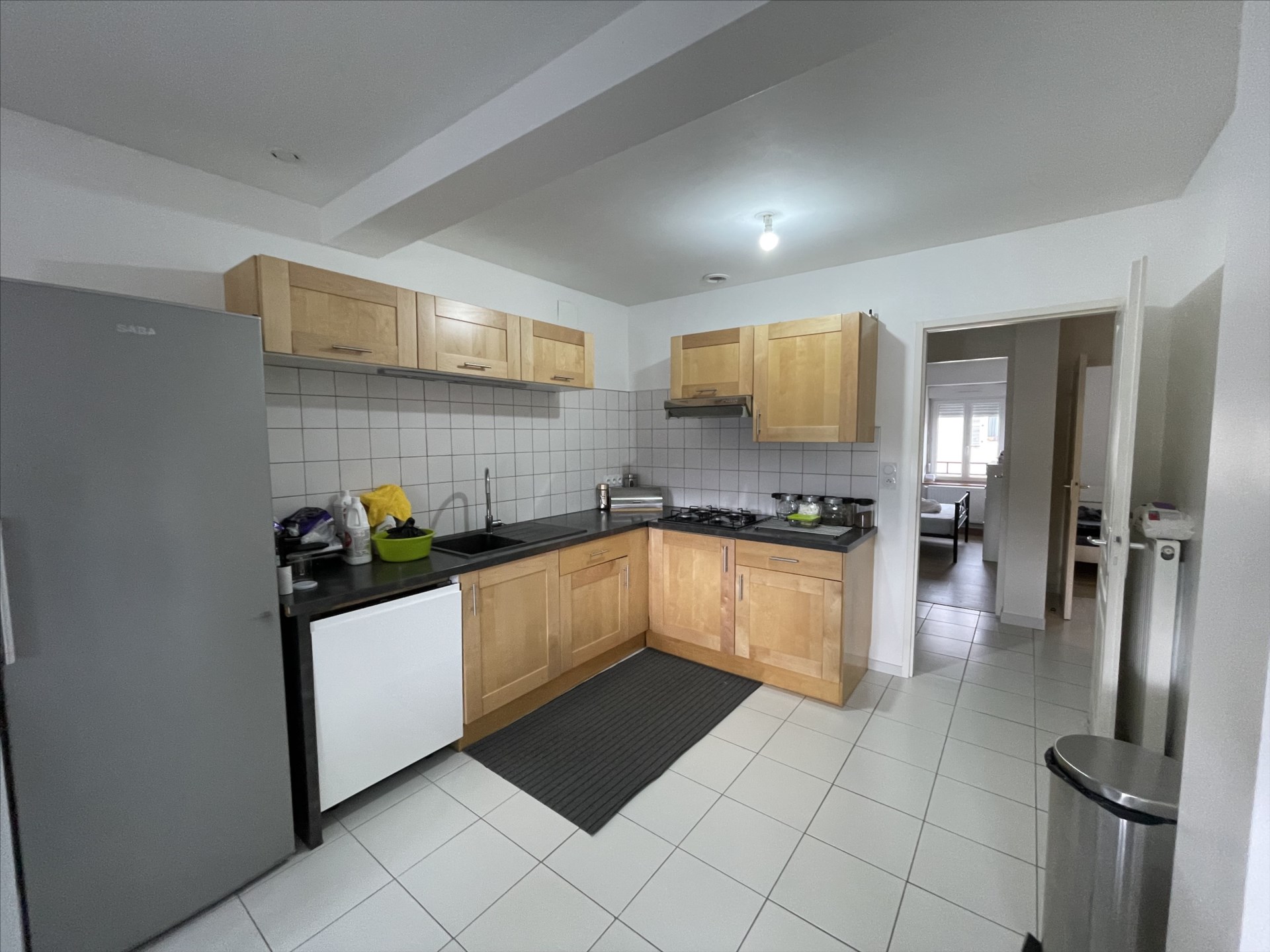DISPONIBLE À PARTIR DE DÉBUT MAI.<BR><BR>Appartement de type F4 situé au 1er étage d'un immeuble Avenue du Général de Gaulle à Courcelles-Chaussy, composé d'un salon ouvert sur une cuisine meublée, un dégagement, un cellier, deux chambres...