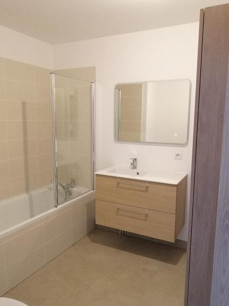 Un appartement de type 2 comprenant un séjour avec cuisine équipée, une chambre, une salle de bains avec baignoire, un WC, un balcon et une place de parking sécurisé.