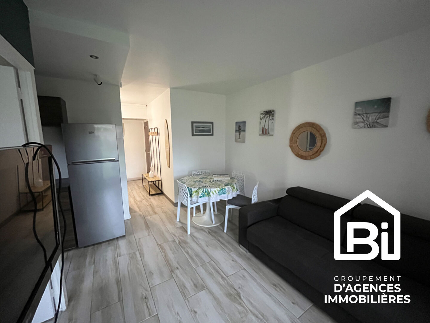 RESIDENCE LES TENNIS - Appartement situé au rez-de-chaussée de la résidence, comprenant séjour avec coin cuisine ouvert, aménagé et équipé (plaque de cuisson, hotte, four), frigo, chambre, salle d'eau, WC séparés et un accès sur l'extérieur.