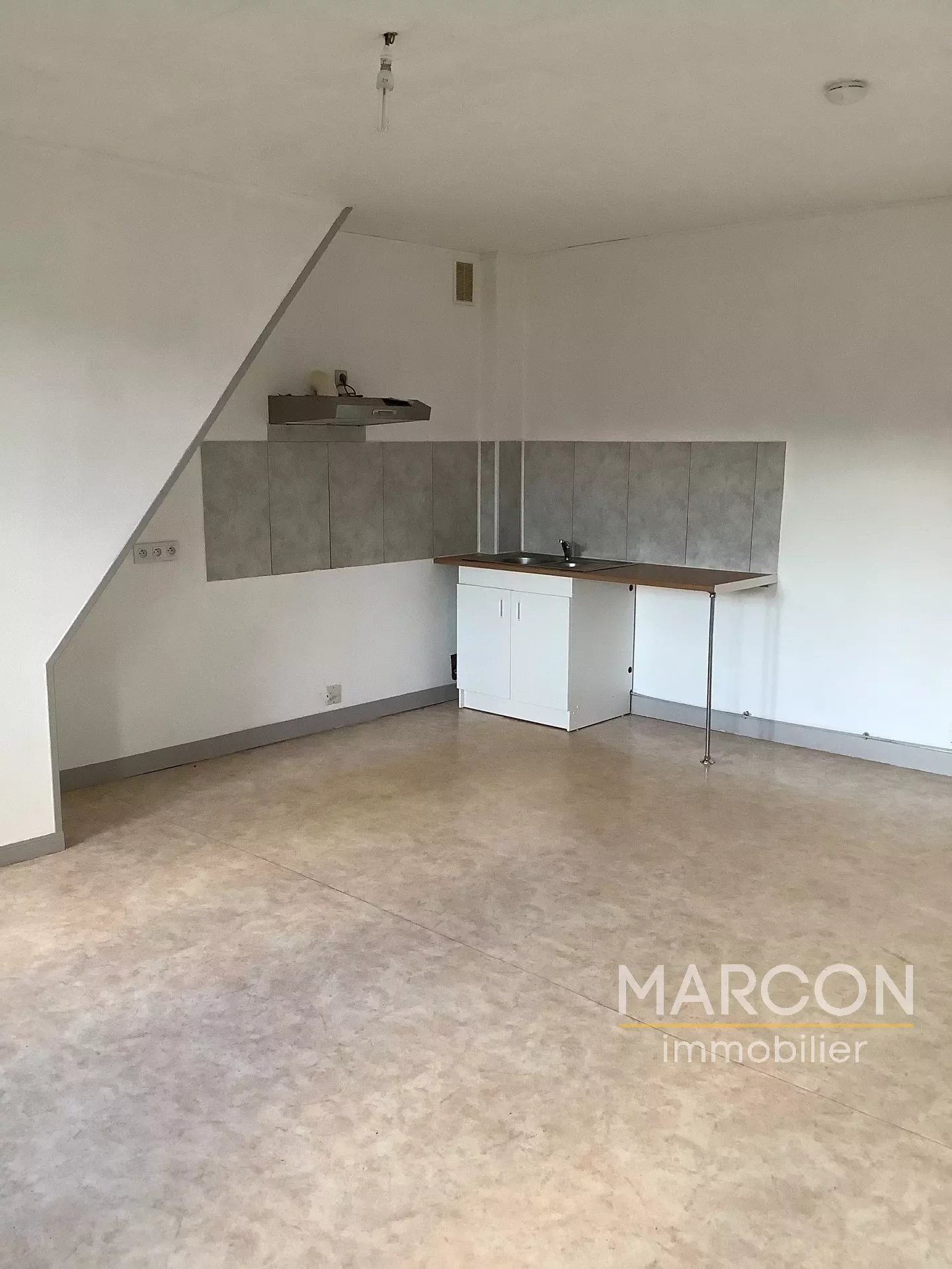 REF 1613 - CREUSE EN LIMOUSIN - Marcon Immobilier La Souterraine vous propose ce F2 de 66 m² comprenant un couloir d'entrée, un grand séjour lumineux, une chambre, une cuisine séparée, un wc séparé et une salle d'eau.