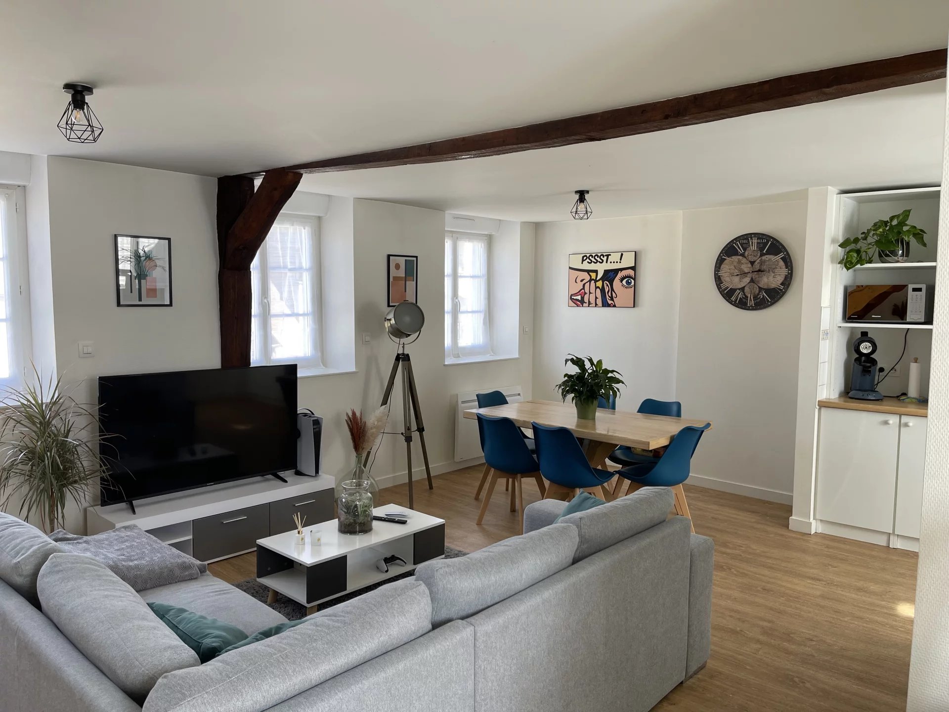 Appartement centre ville, mansardé, vaste espace de vie, chauffage gaz de ville, bonne isolation, une chambre. Quartier calme