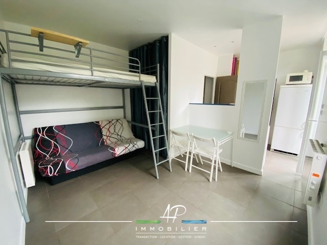 Appartement de type 1 bis REFAIT A NEUF, comprenant une pièce de vie avec cuisine ouverte aménagée et équipée (frigo, plaques de cuisson), un coin nuit en mezzanine avec rangements...