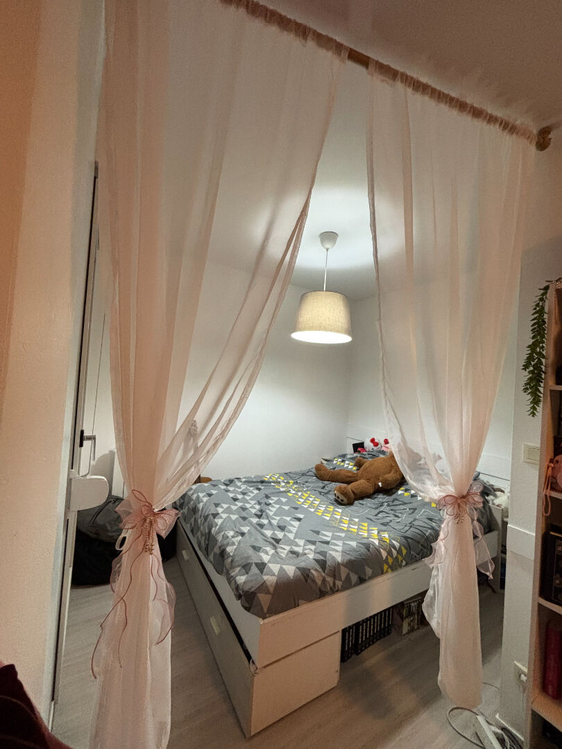 Lumineux appartement au 2ème étage d'une petite copropriété. Pièce à vivre avec cuisine aménagée et équipée (frigo, plaques de cuisson), une salle d'eau avec wc. Proc...