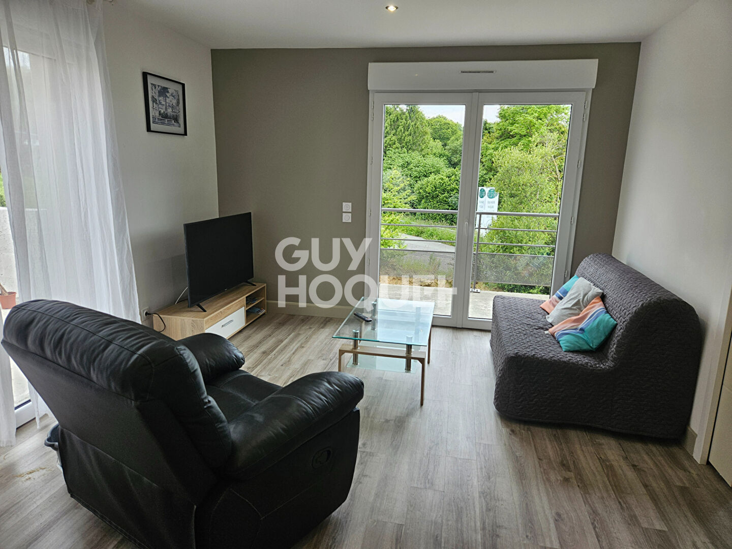 A LOUER CHEZ AIS DINAN: Un appartement meublé situé au 1er étage avec ascenseur comprenant: Une entrée avec placards, un couloir avec placards, un salon séjour donnant sur un balcon exposé Sud, une cuisine équipée, deux chambres, une salle d'eau et un WC ...