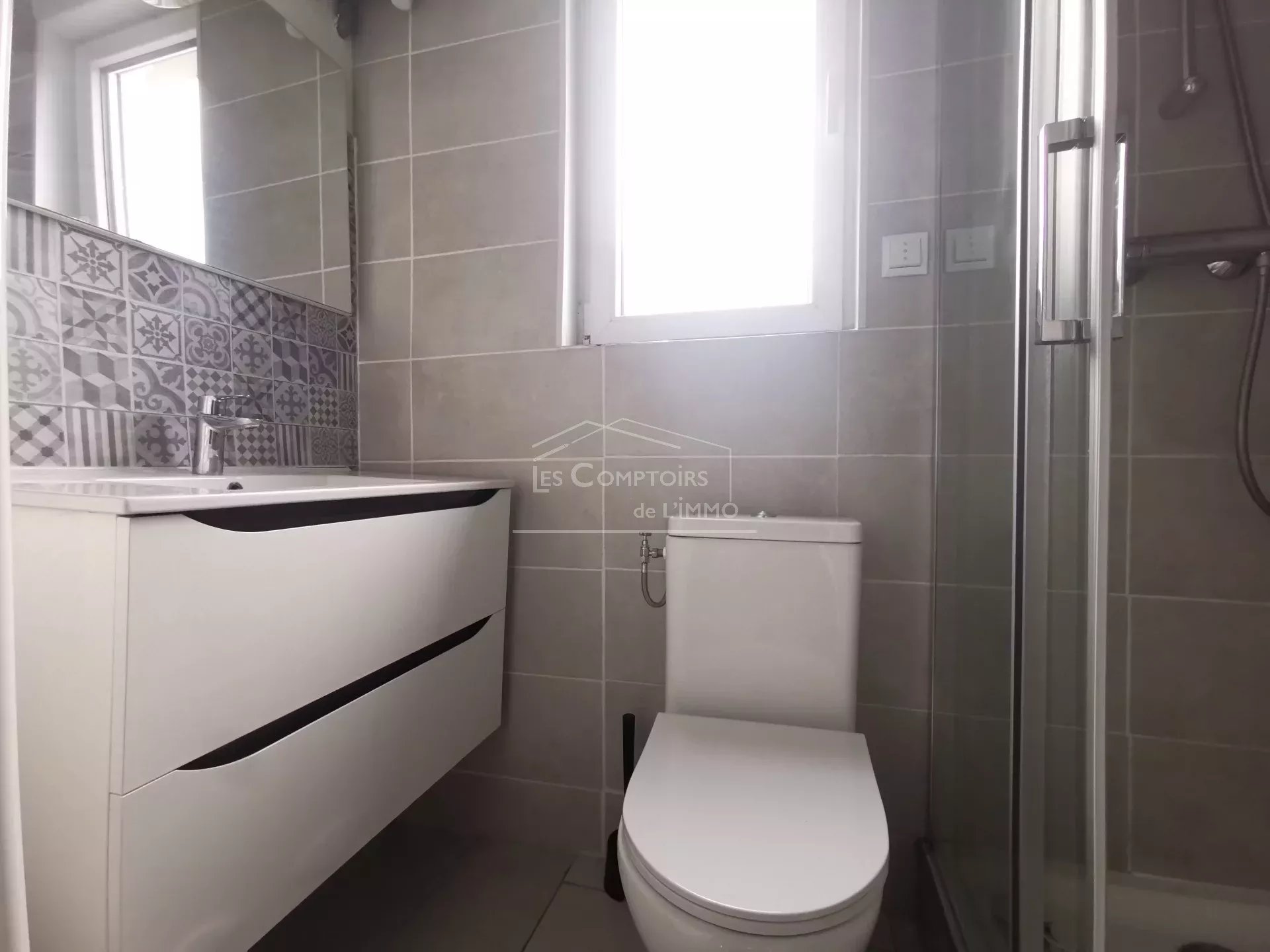 Studio loué non-meublé comprenant : pièce de vie, Cuisine avec placard et salle de douche avec WC.