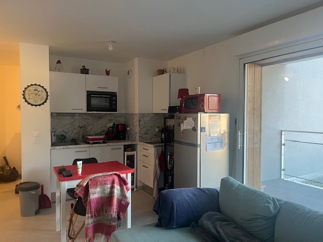 Donville les bains, dans recente neuve avec ascenseur et sécurisée bel appartement comprenant entrée avec placard, piece de vie avec cuisine aménagée, grand balcon, chambre et salle d'eau avec wc.