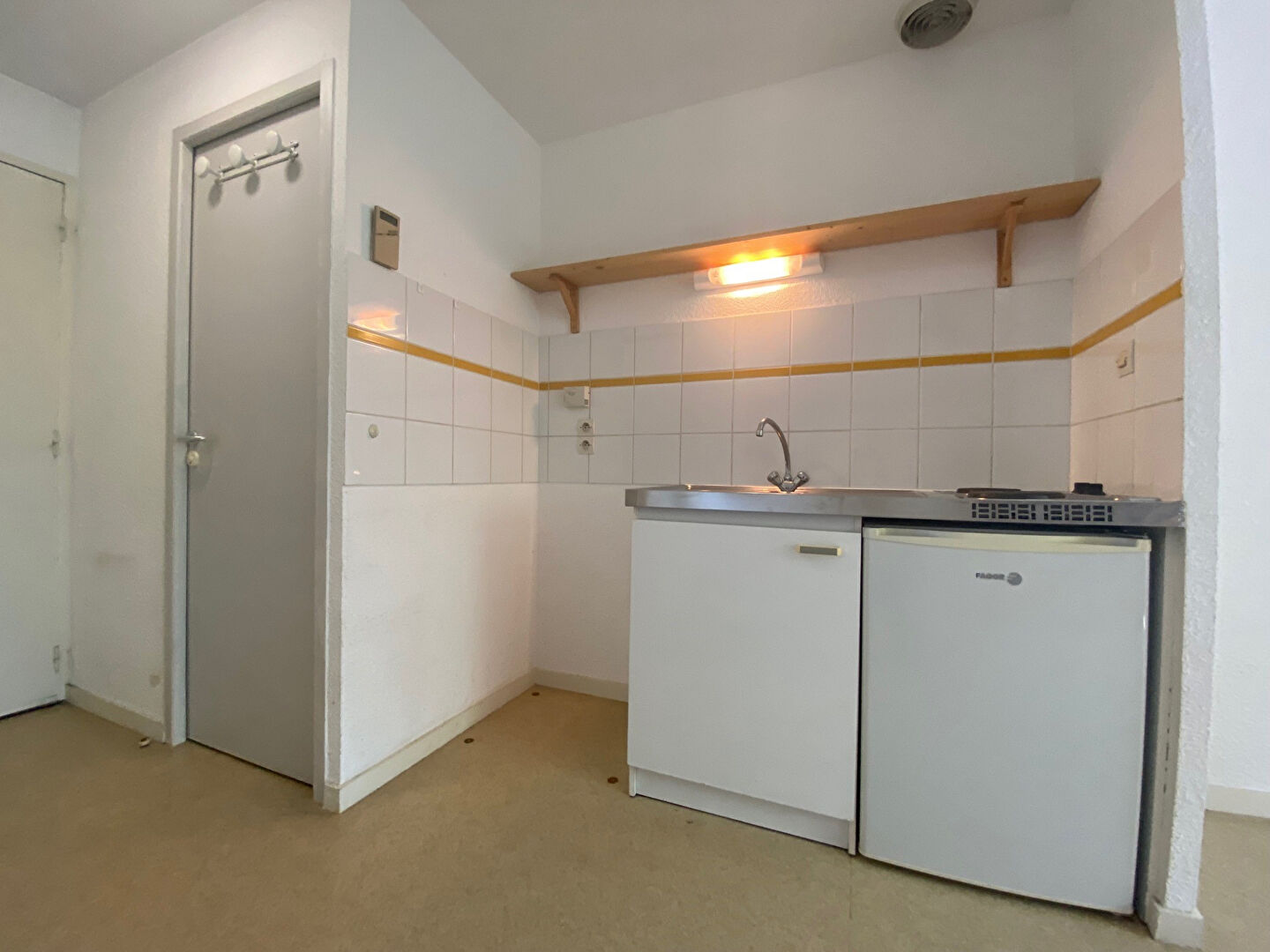 Entrée, sdb,wc, cuisine équipée, séjour, 1 chambre.