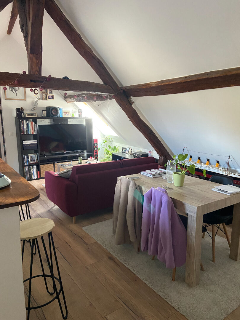 Ce charmant appartement est situé sous les toits et se compose d'une entrée donnant sur un joli séjour avec poutres...