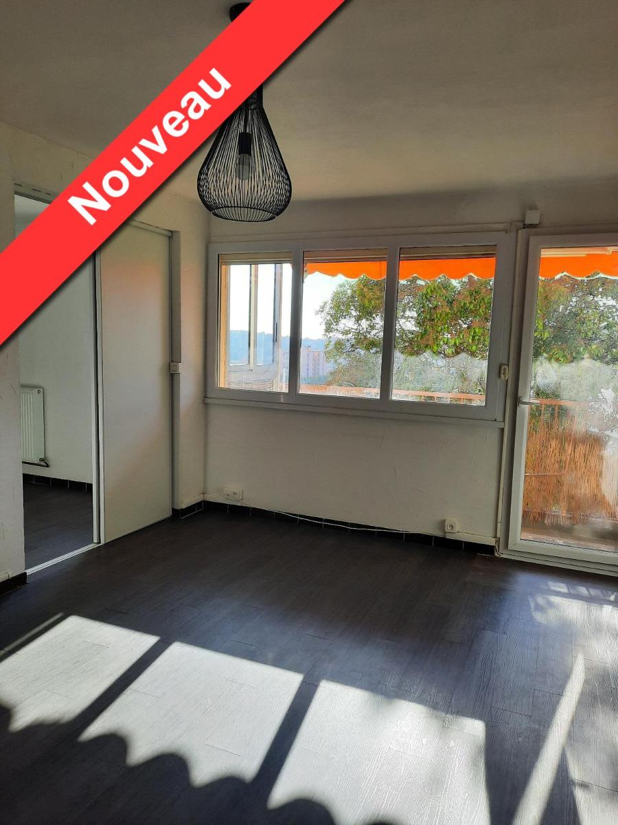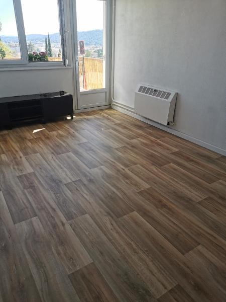 DRAGUIGNAN - Rés La Louve - F3 rénové de 55.39m² au 3ème étage sans ascenseur - composé d'une entrée avec placard - séjour ouvert sur balcon - cuisine indépendante aménagée et équipée, WC, salle de bains, 2 chambres dont une avec placard - CAVE
