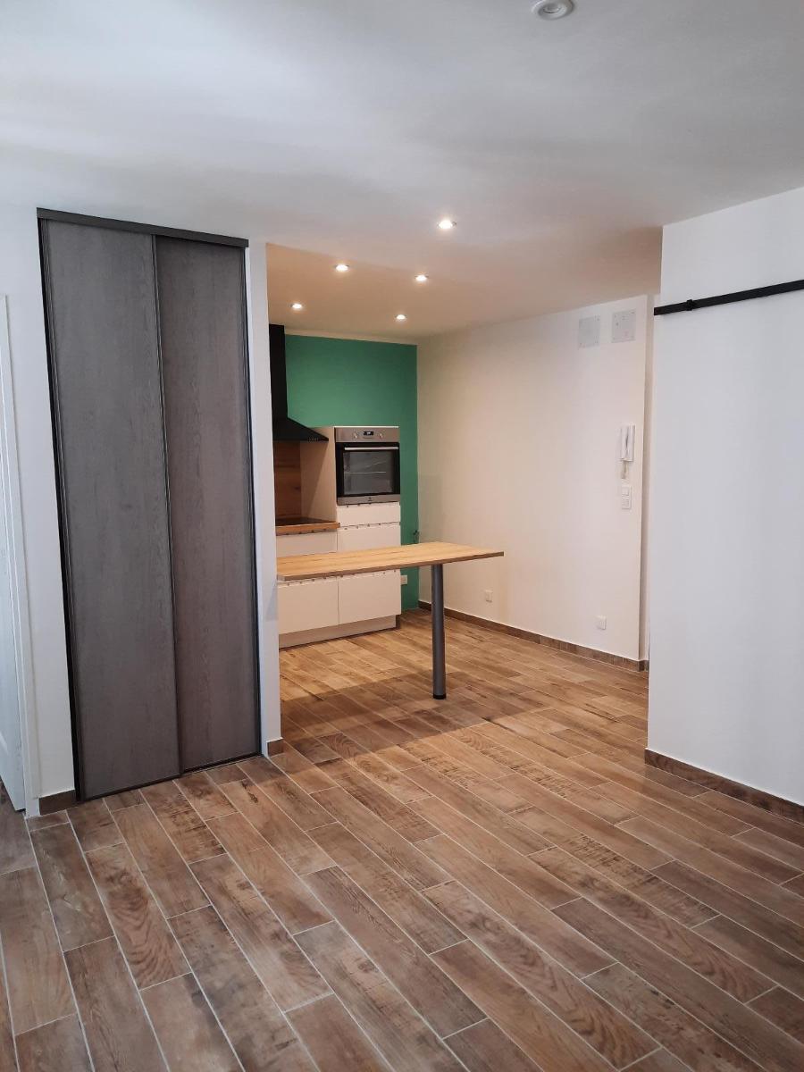 En centre ville, Type 2 de 45 m² en rez-de-chaussée et garage. L'appartement se compose d'une entrée, séjour, cuisine US aménagée, chambre, salle d'eau et WC.<BR><BR>DG: 660.00¤ - charges/mois: Ordures Ménagères / Hono charge loc : v...