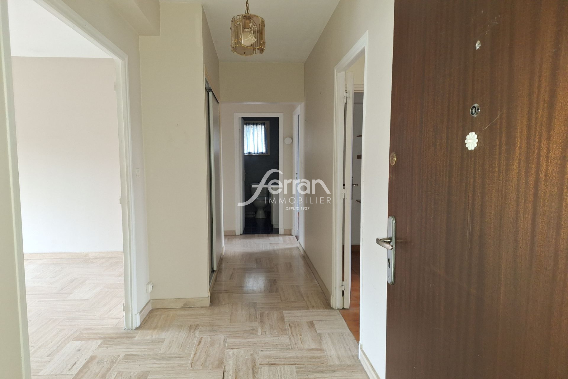 Dans petit immeuble proche du centre-ville, Type 3 de 77 m² au 1er étage sans ascenseur. Il se compose d'une entrée, séjour avec climatisation, balcon filant, cuisine indépendante aménagée avec cellier attenant, balcon, d'un dégagement avec placard d...