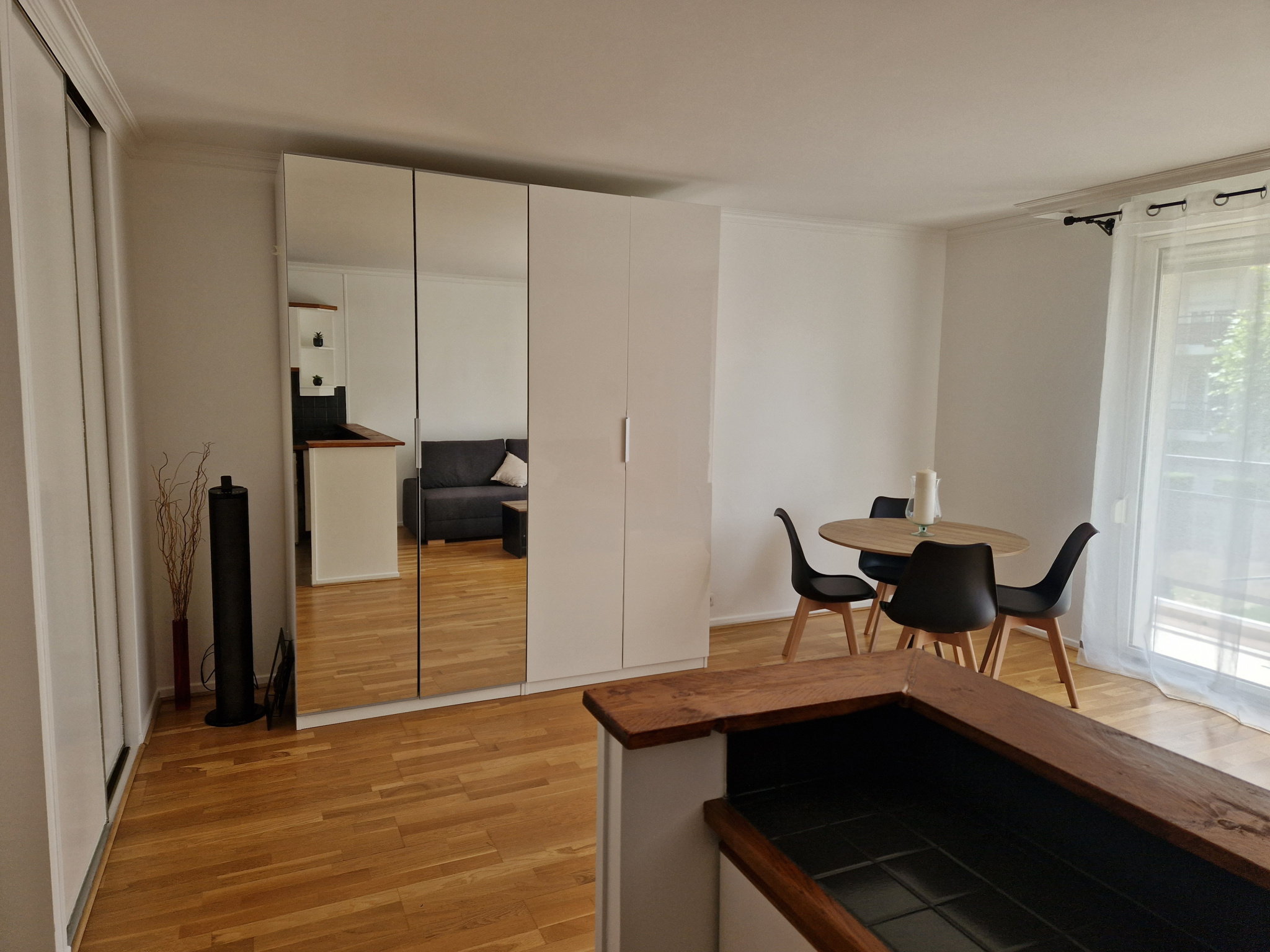 Grand studio meublé fonctionnel de 35,73 m2 avec balcon comprenant :