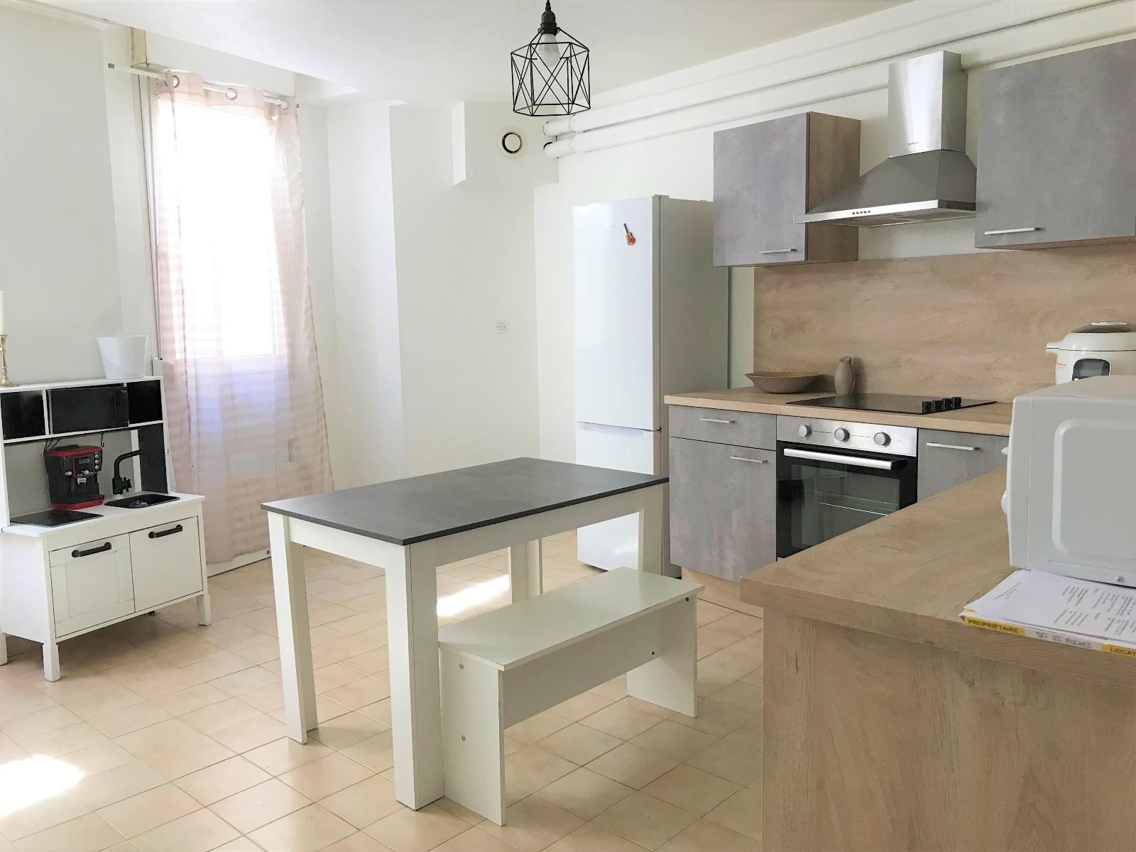 Romans centre ville (rue du mouton) , Charmant appartement loué meublé de 57.21 m² au 1er étage sans ascenseur composé d'un hall d'entrée, d'une cuisine meublée et équipée ouverte sur le séjour, une terrasse de 15m² , une chambre, une salle d&...