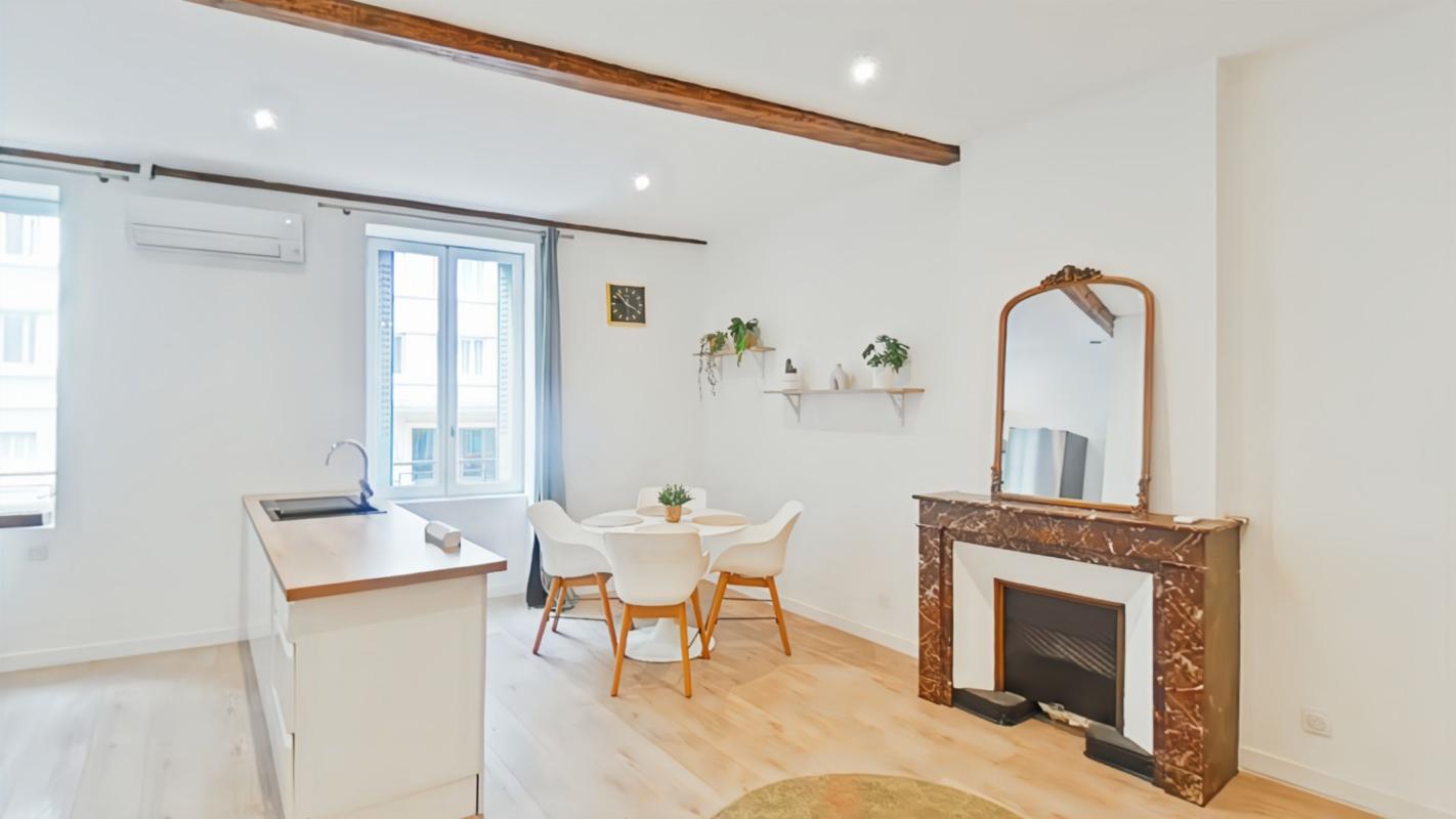 Valence - Hyper centre Valence - Appartement T2 de 48 m² rénové comprenant une cuisine aménagée et équipée attenant au salon, une chambre, une salle d'eau, WC.