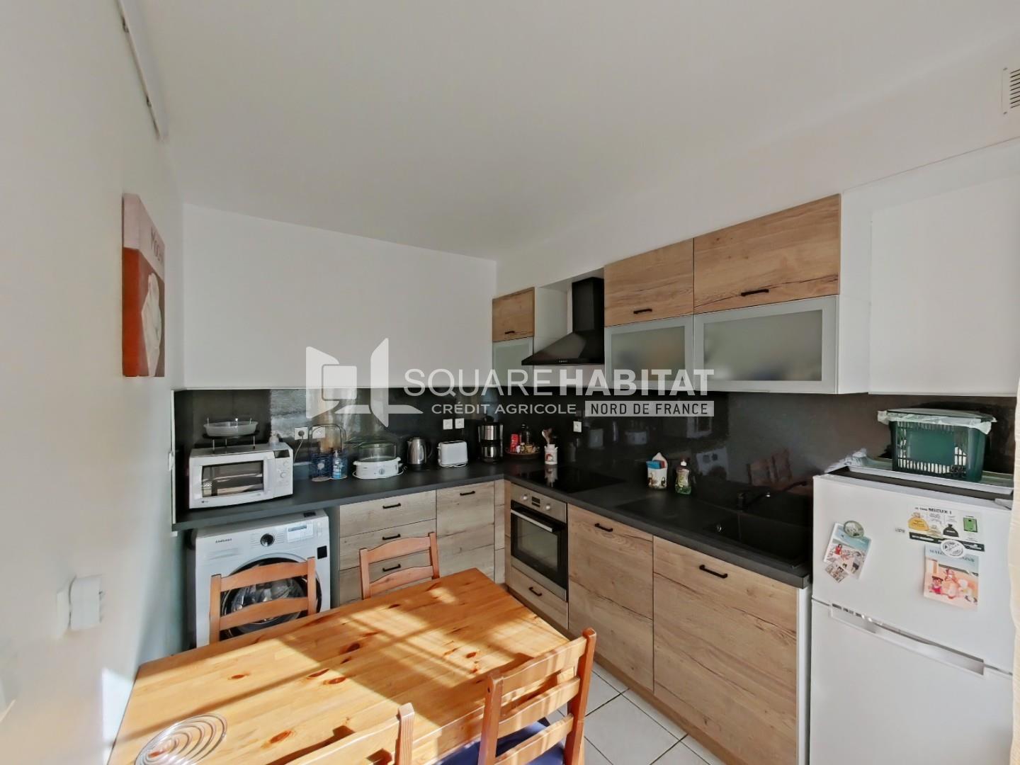 Sur ROSENDAEL Quartier Château Coquelle un appartement au 1er étage d'un immeuble comprenant un séjour donnant sur un coin cuisine, 1 chambre, 1 bureau, salle de douche, wc séparé.