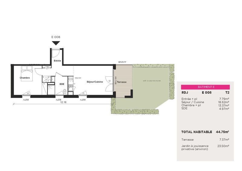 Ce projet neuf se situe à l'ouest du centre de Eaunes dans un cadre résidentiel calme et agréable. Réserver dès à présent cet agréable T2 situé au rez-de-jardin. Il est composé d'un séjour avec cuisine équipée s'ouvrant sur la terrasse de 8...
