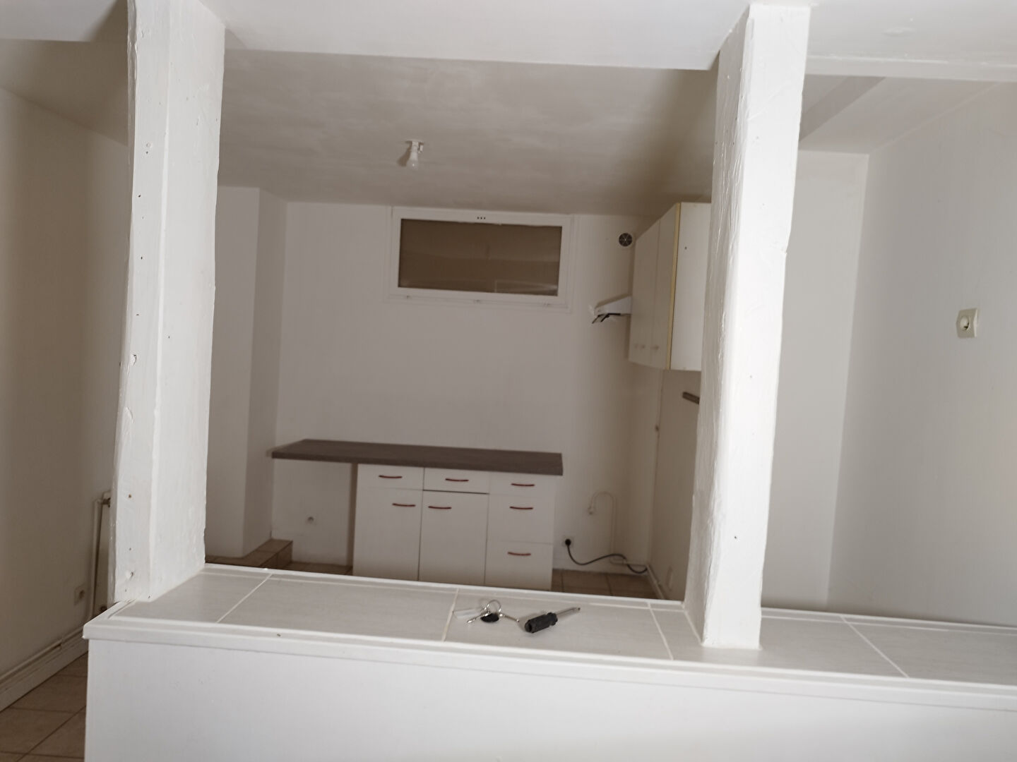 Aux pieds de Carrefour Market, En centre-ville, grand F2 bis lumineux, de 60 m², au 3ème étage, comprenant entrée, cuisine ouverte sur séjour, couloir desservant salle de bain, WC, une chambre et un bureau.
