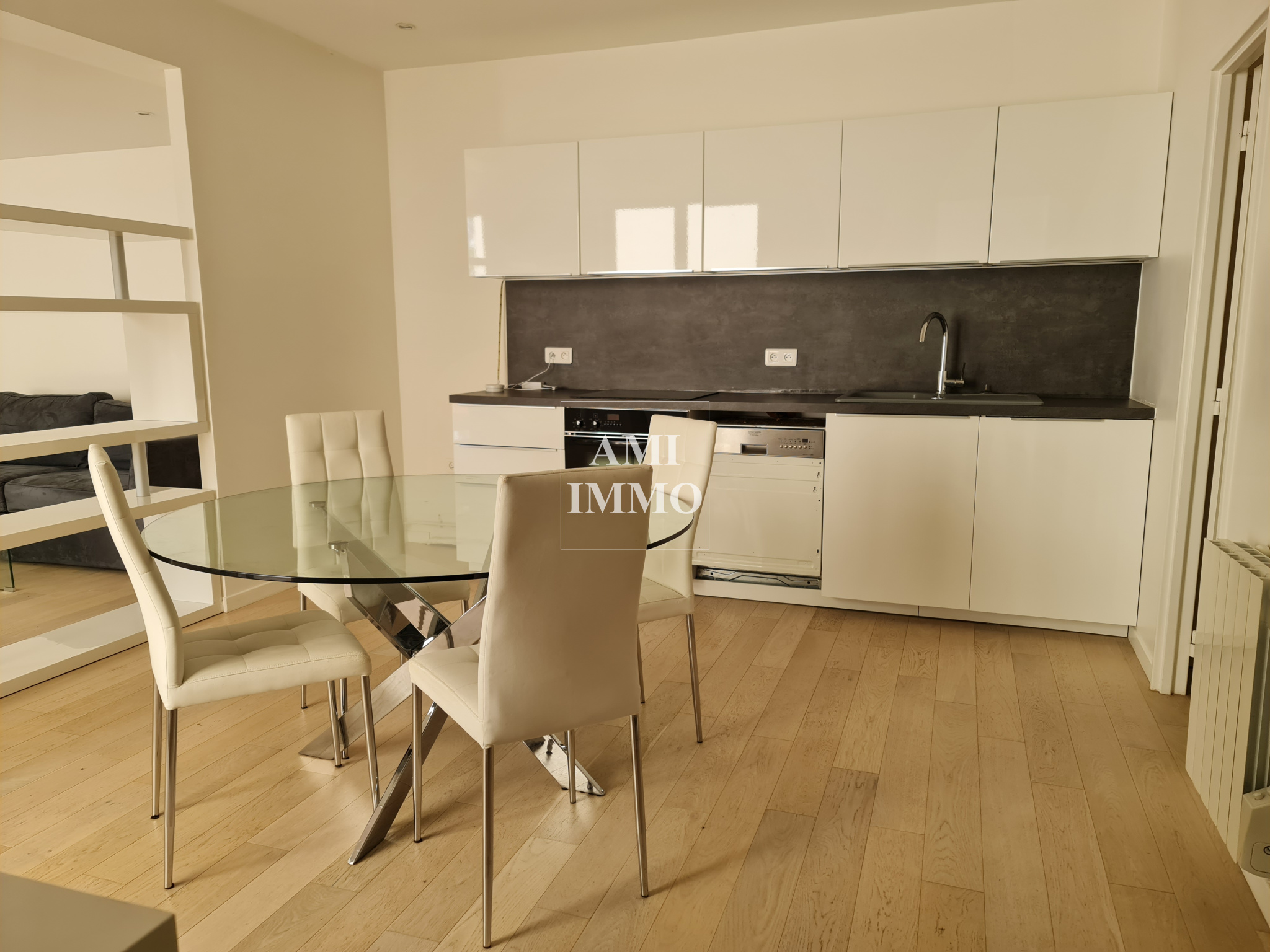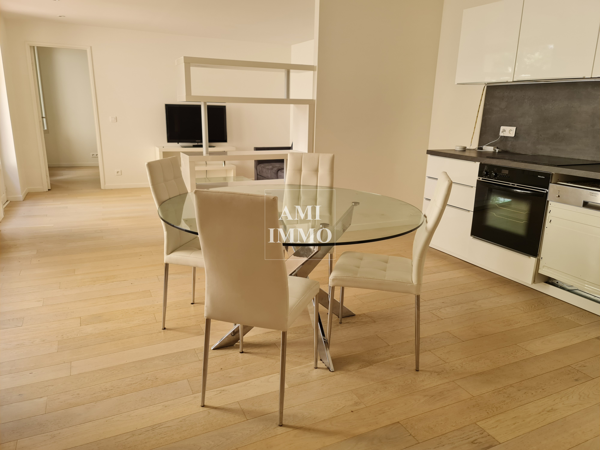 En plein centre-ville, avec commerces, écoles et RER à pied, F2 meublé de 50m2. Cet appartement sans vis à vis bénéficie d'une terrase. Il offre : séjour ouvrant sur terrasse, cuisine américaine aménagée et équipée, buanderie, chambre, salle de bains, WC ...