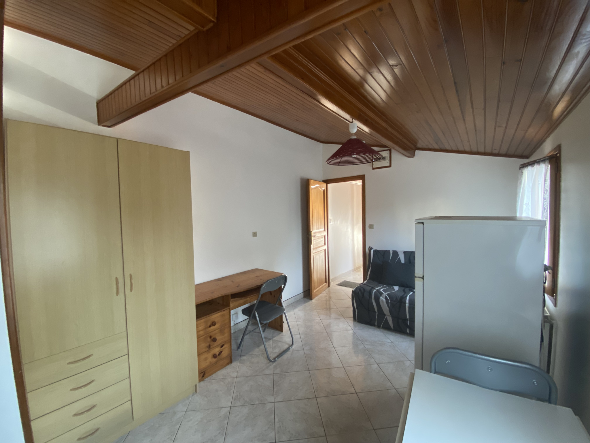 Dans maison du propriétaire, Studio Meublé rénové : séjour avec coin-cuisine équipé (plaques gaz avec bouteille, hotte, micro ondes, frigo) clic-clac, table, chaise, salle d'eau avec wc.