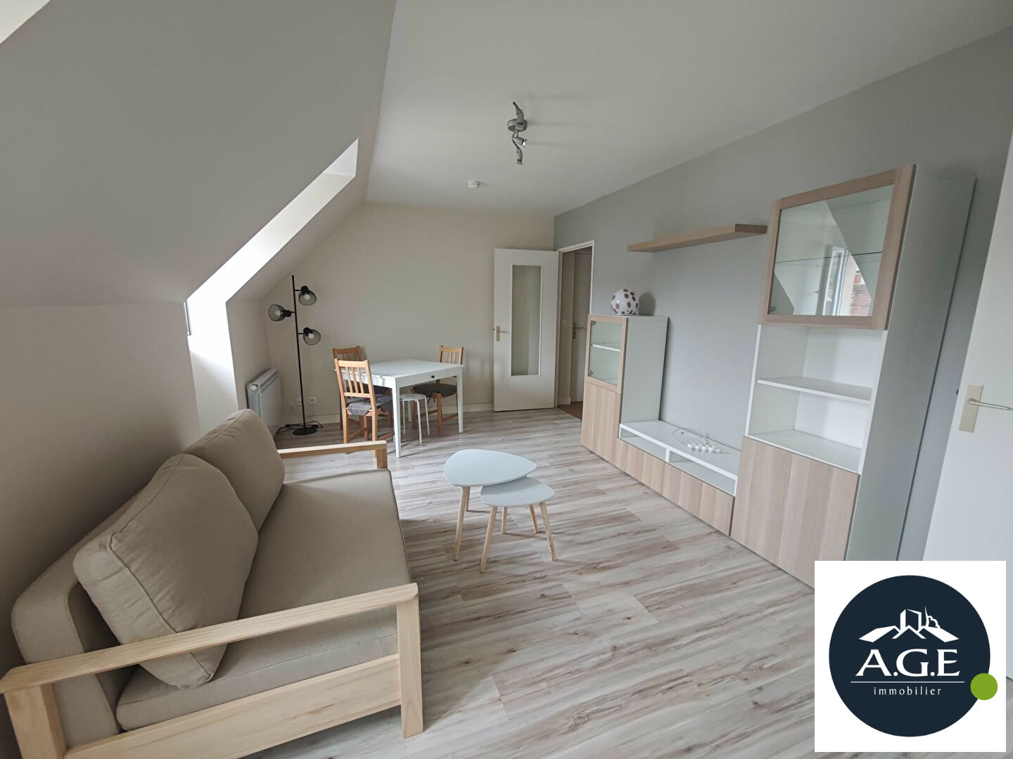 Appartement de type F2 comprenant au rez de chaussée une cuisine aménagée, un séjour, un WC