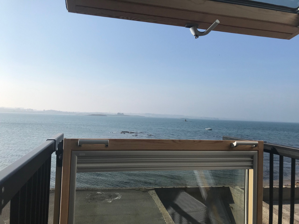 CARANTEC : vue mer, appartement sous mansardes situé au 1er étage composé d'un salon-séjour avec cuisine aménagée et équipée ouverte, 2 chambres, salle d'eau avec WC. Stationnement.