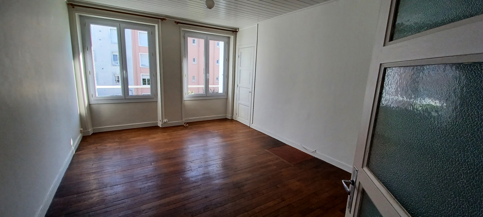 Spacieux T3 plein centre ville SIAM - RDC surélevé de 63 m2 environ - comprenant une belle entrée, un grand séjour, deux belles chambres, une salle d'eau, un WC séparé et une cuisine aménagée avec cuisinière gaz et réfrigérateur- chauffage individuel au ...