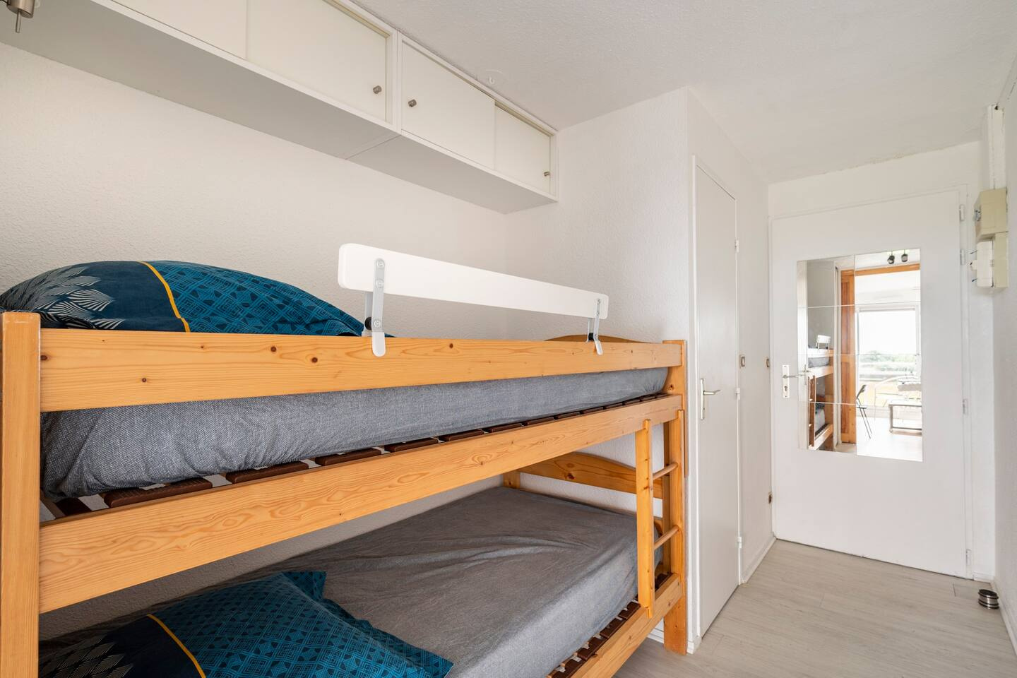 Le logement s'ouvre sur une entrée astucieusement aménagée avec un lit superposé, se poursuit par une salle d'eau fonctionnelle, pu...