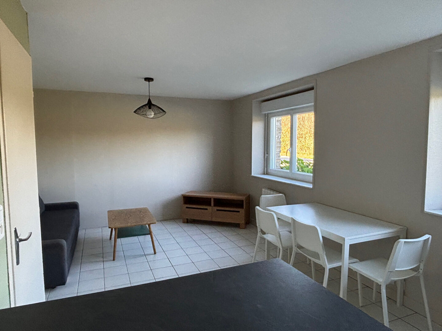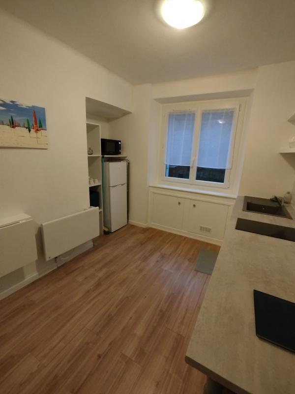 QUIMPER - A proximité du halage - STUDIO rénové non meublé en rez-de-jardin comprenant : pièce de vie donnant sur jardin commun, coin cuisine aménagée et équipée (combi congélateur réfrigérateur, table de cuisson, hotte aspirante), salle de bains avec wc.