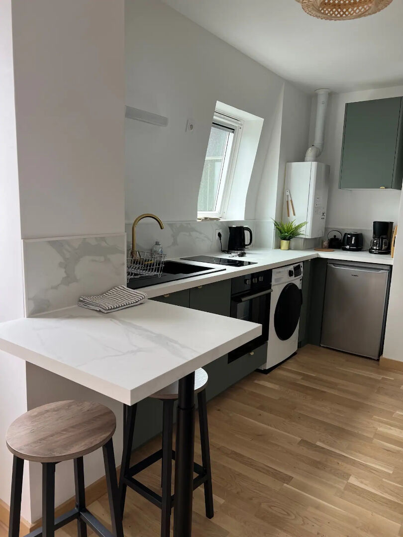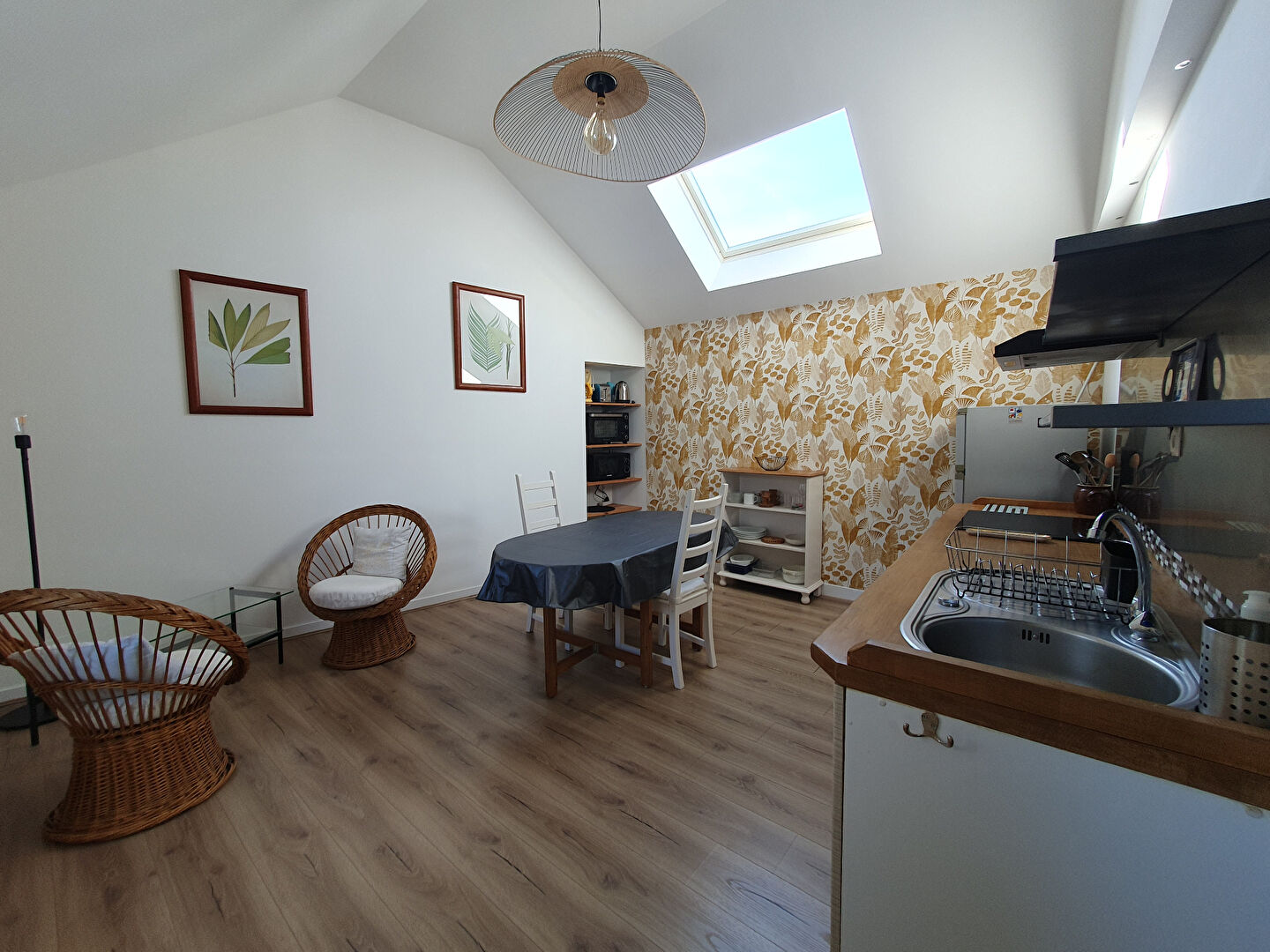Au coeur de Beg-Meil, appartement de type 1 bis meublé entièrement rénové offrant : séjour avec kitchenette aménagée et équipée, chambre, salle d'eau avec WC. Local commun avec lave-linge et sèche-linge.
