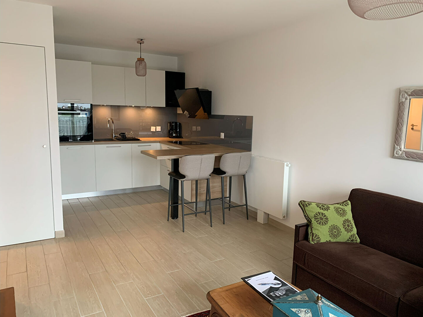 A LOUER EN MEUBLÉ A L'ANNÉE , toutes commodités à pied, appartement situé au 3ième étage d'une résidence de très bon standing, sécurisée avec ascenseur. Ce deux pièces comprend une entrée avec placard, un séjour avec balcon, une cuisine ouverte aména...