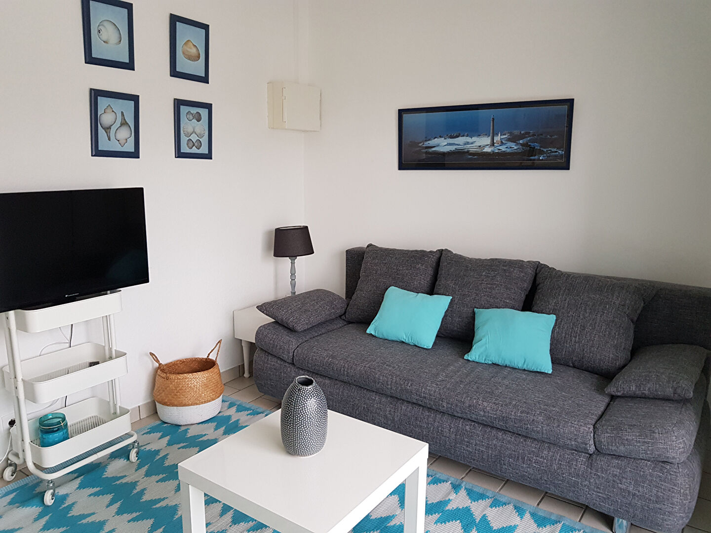 A LOUER EN BAIL MOBILITÉ (jusqu'à fin Juin) dans petit collectif en plein centre du bourg de Beg-Meil, studio composé d'un séjour s'ouvrant sur terrasse avec son coin kitchenette équipée, salle d'eau + WC. Appartement clair et agréable. Ch...