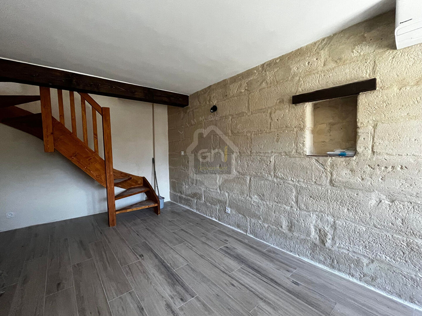 A Fourques, dans une impasse calme Rue de la République, un T2 avec beaucoup de charme en duplex de 28m² rénové en 2022 avec climatisation comprenant :