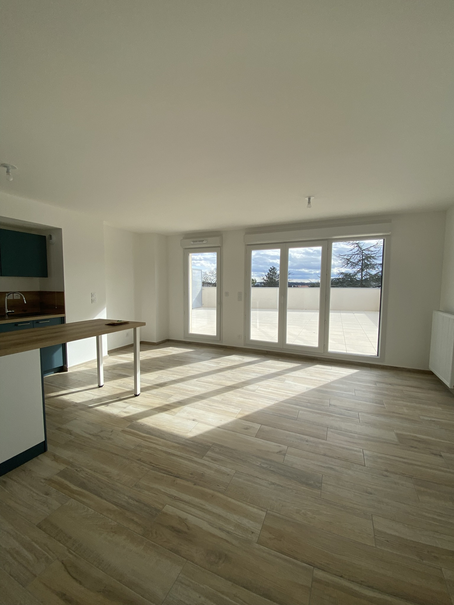 Appartement de type 4 neuf, dans un immeuble neuf, sécurisé et calme, au 4ème et dernier étage, comprenant un hall d'entrée, une cuisine ouverte sur le séjour, aménagée et semi équipée, accédant à une terrasse d'...